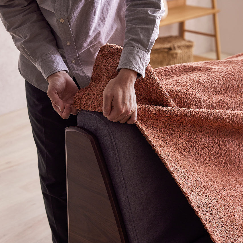 写真は「オルぺ 200cm ウォールナット×ダークグレー」に「らくらくカバー シェニール 200cm コーラルピンク」を使用したイメージです。
