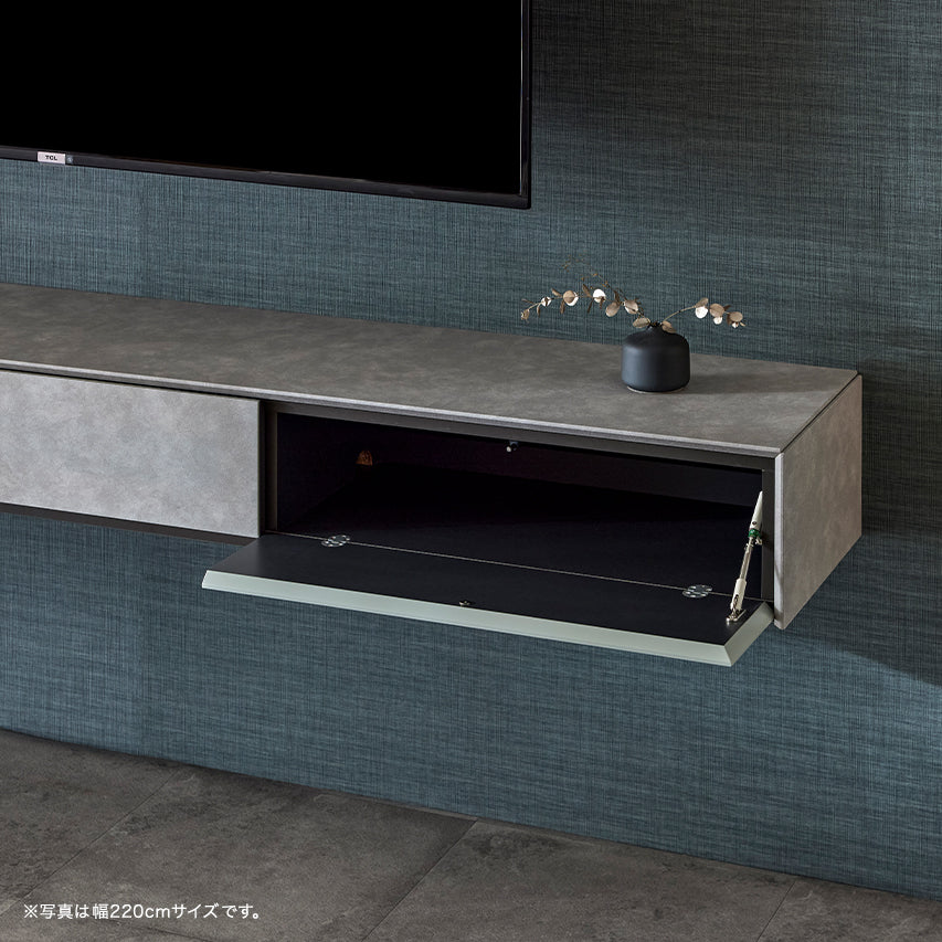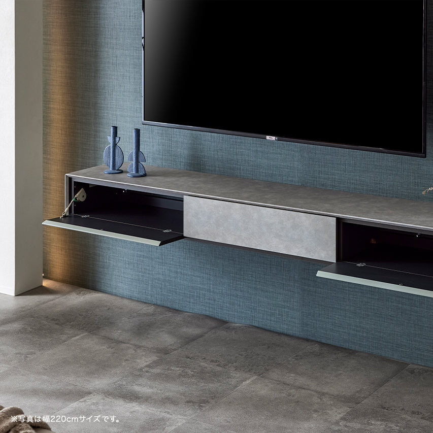 フロートテレビボード 幅180cm 幅200cm 幅220cm Wallin / ウォーリン 扉を閉めたままリモコン操作可能 モルタル調 大川家具 モーブル