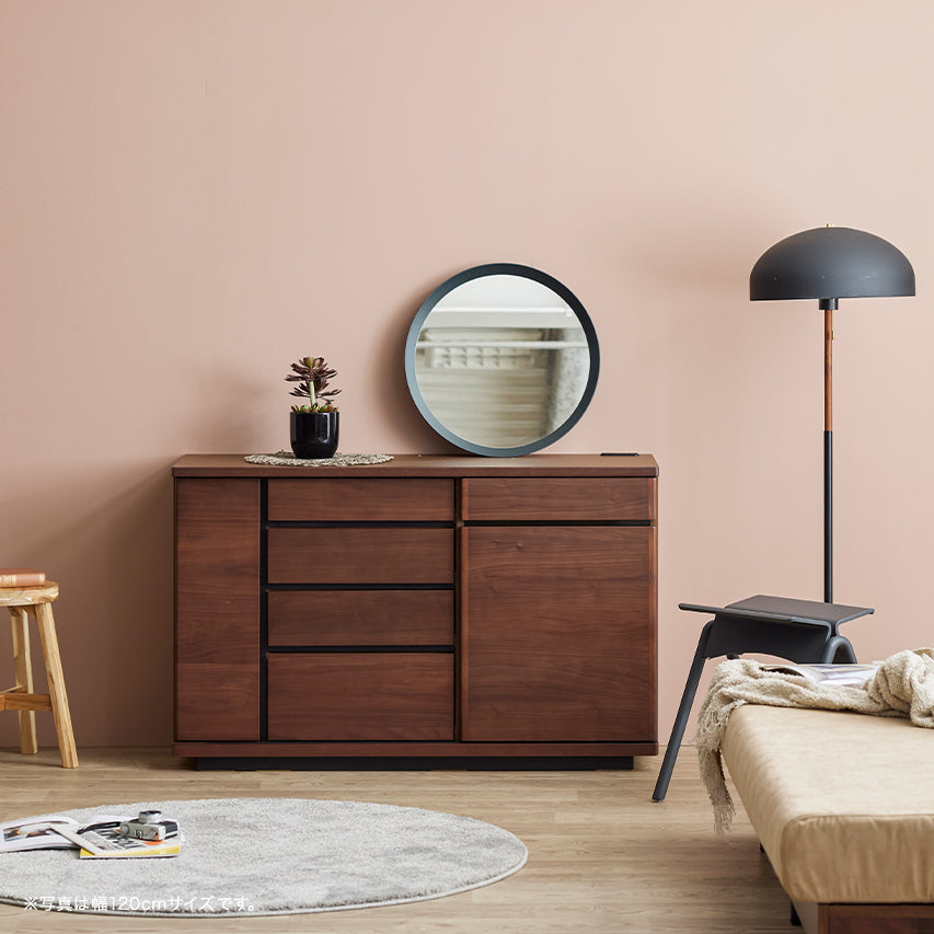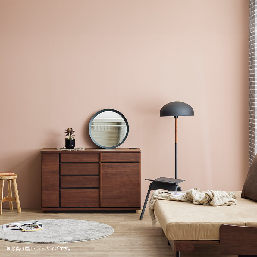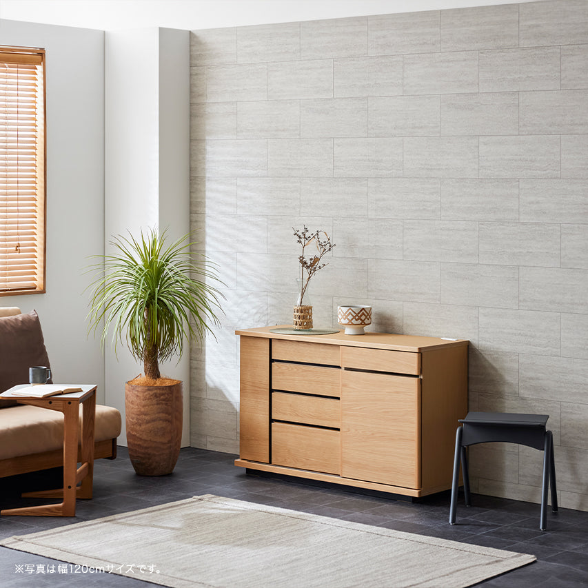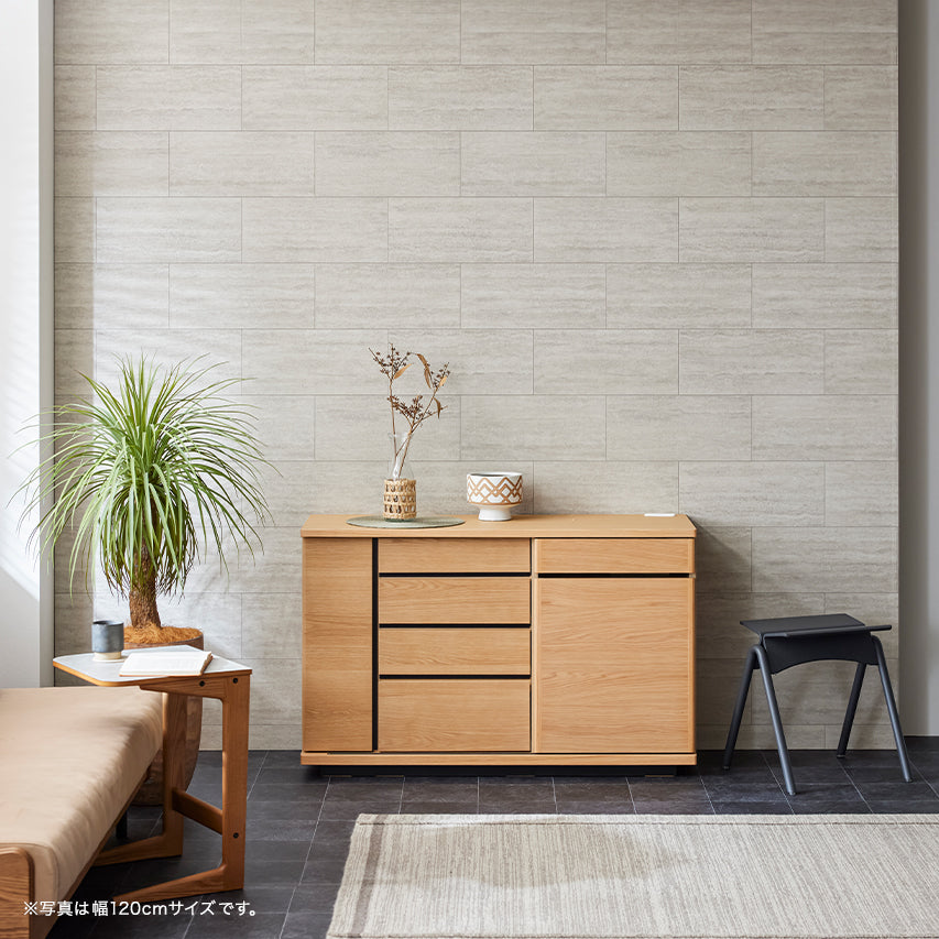 床からわずかに浮いたように見える台輪構造により、安定感と視覚的な軽やかさを両立。 十分な収納量を備えながらも、空間に圧迫感を与えません。