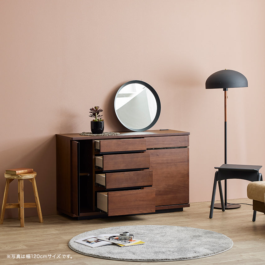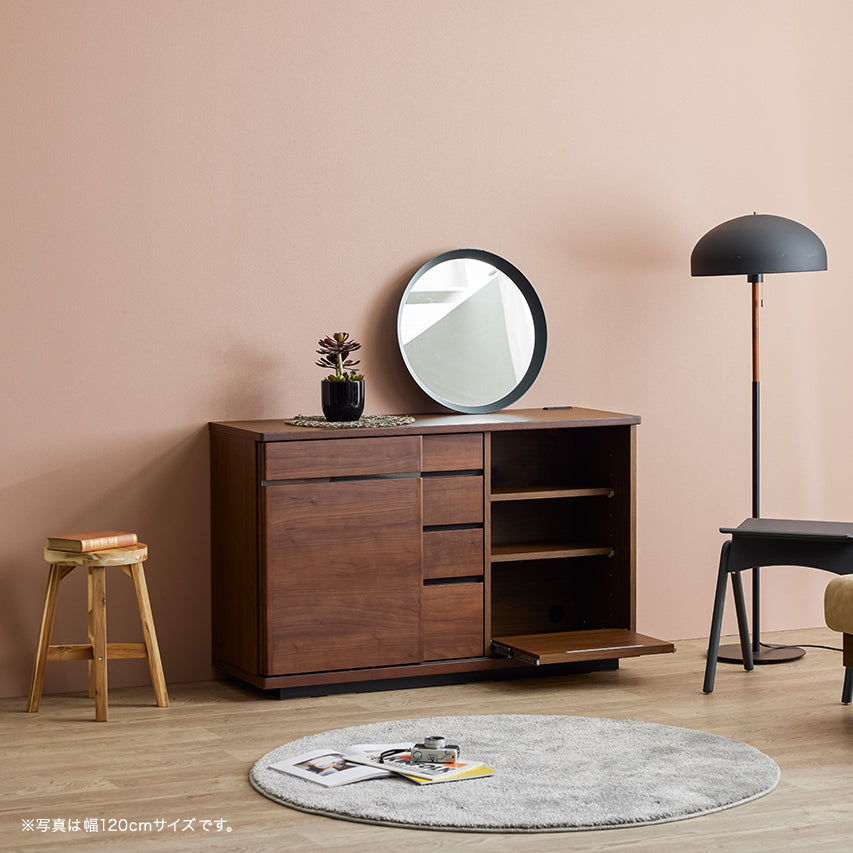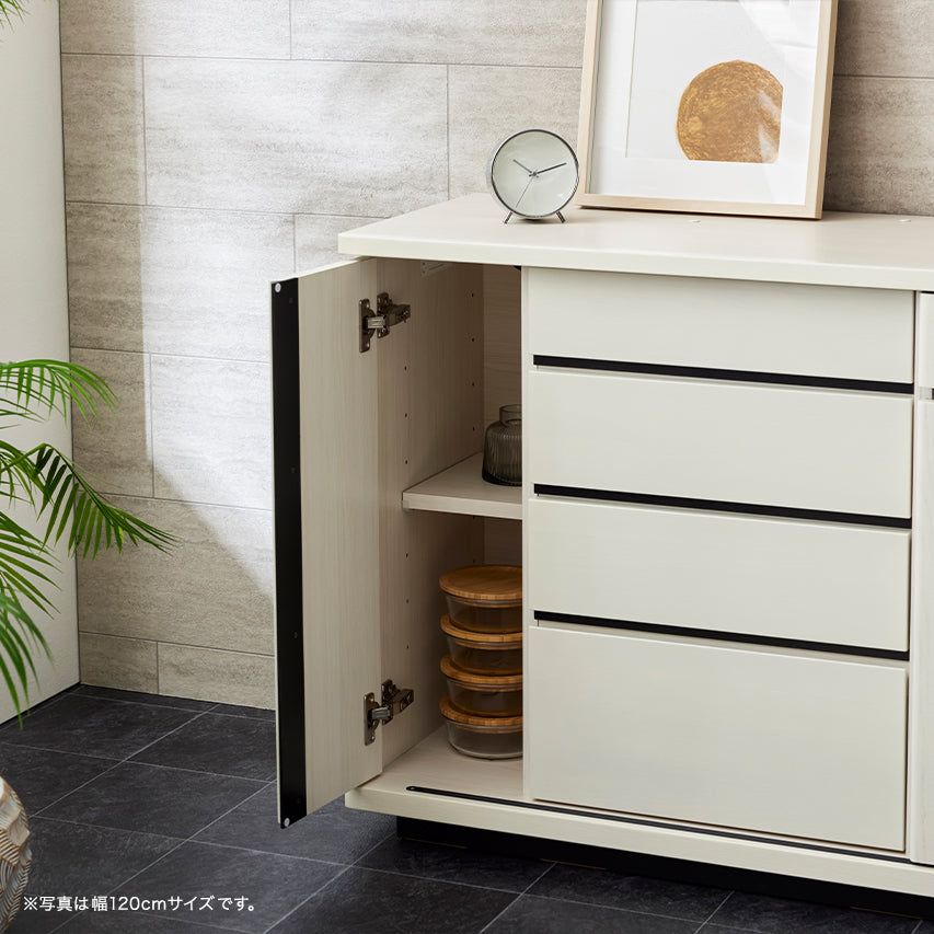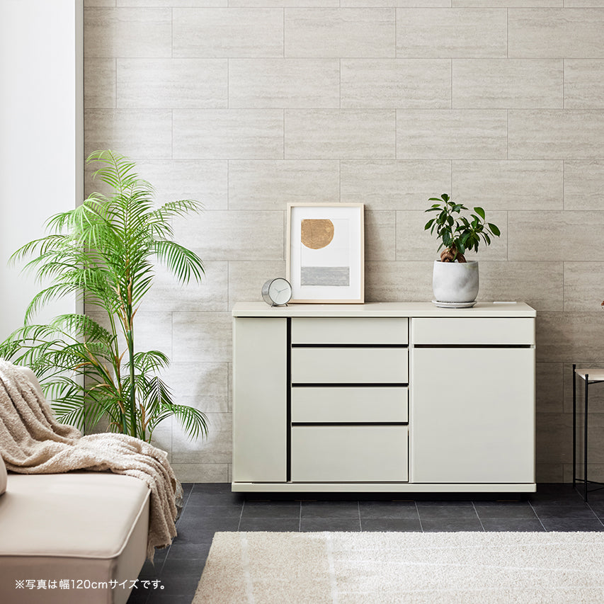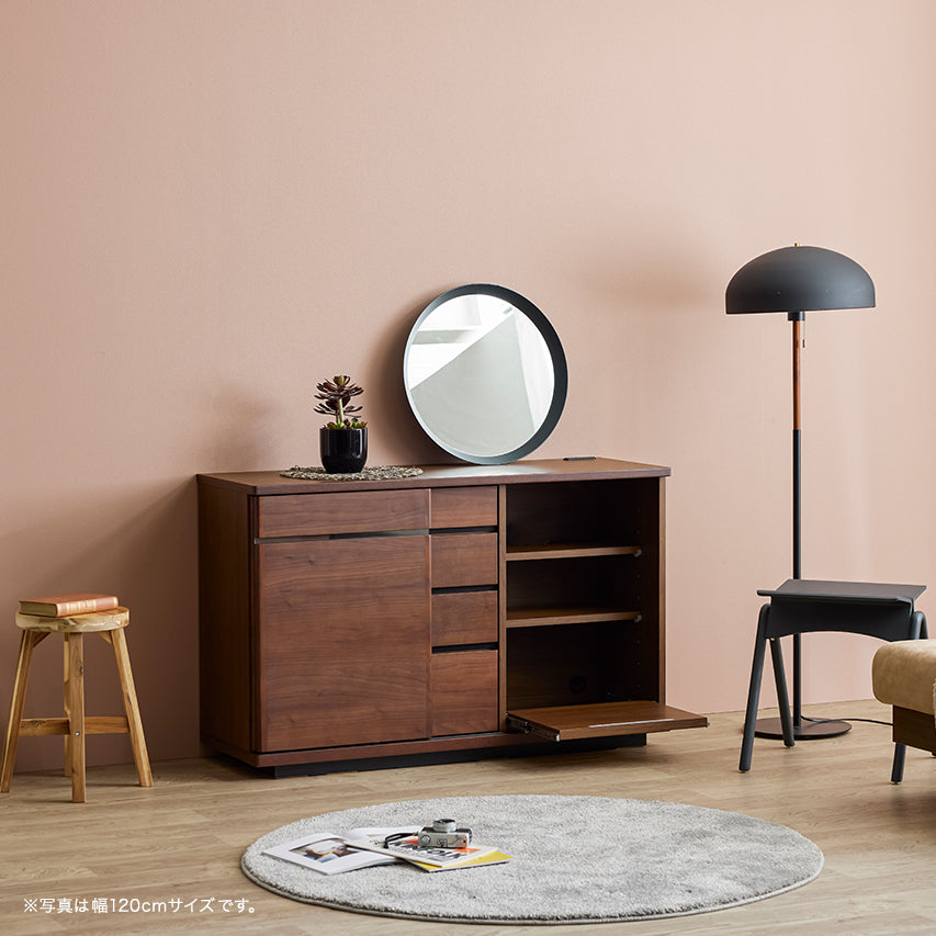 床からわずかに浮いたように見える台輪構造により、安定感と視覚的な軽やかさを両立。 十分な収納量を備えながらも、空間に圧迫感を与えません。