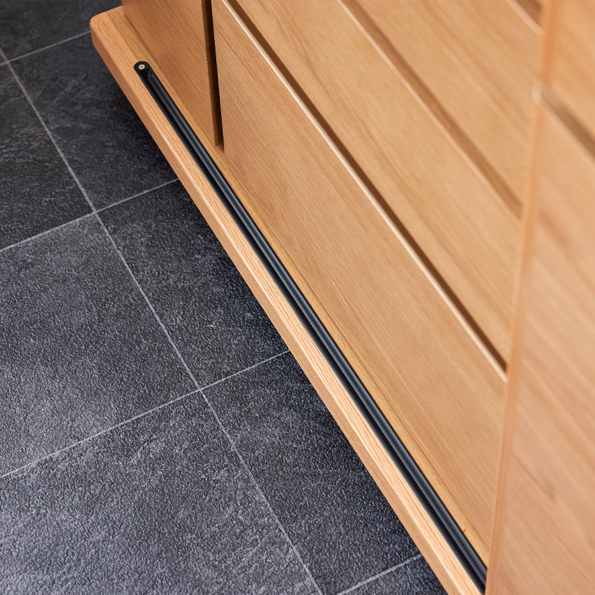 「Storage/ストレージ」最大の特長は、左右にスライドして開閉する引き戸構造。 引き戸は、扉を開けるための前方スペースを必要としないため、通路幅が限られたリビングや、椅子を引く動作が発生するダイニングスペース、人の動きが重なりやすいソファ後ろなどにも設置可能です。 家族が行き交うリビングでも動線を妨げず、ストレスのない使い心地を実現します。