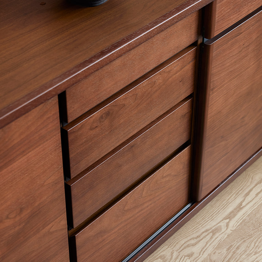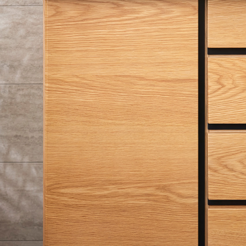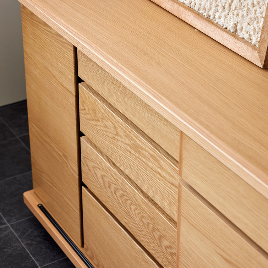 床からわずかに浮いたように見える台輪構造により、安定感と視覚的な軽やかさを両立。 十分な収納量を備えながらも、空間に圧迫感を与えません。