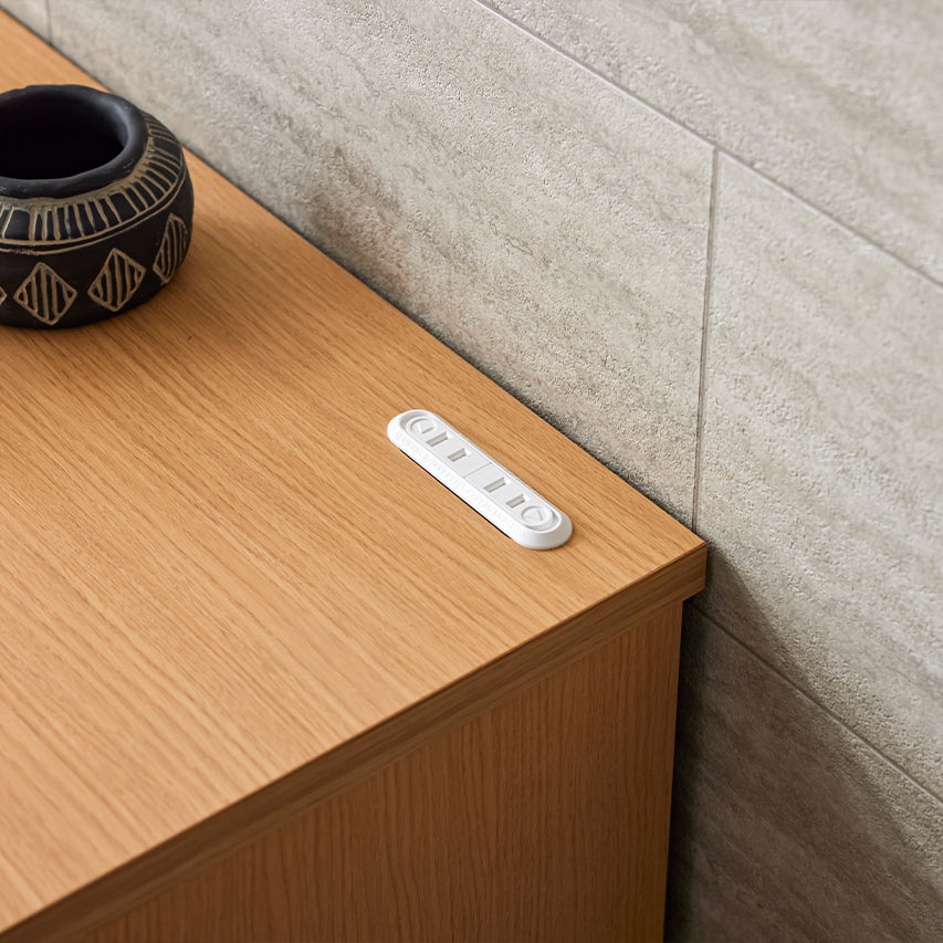 スマートフォンやPCの充電に使いやすいよう天板に設置しました。埃の侵入を防ぐスライドカバー付きで、見た目もすっきりと保てます。