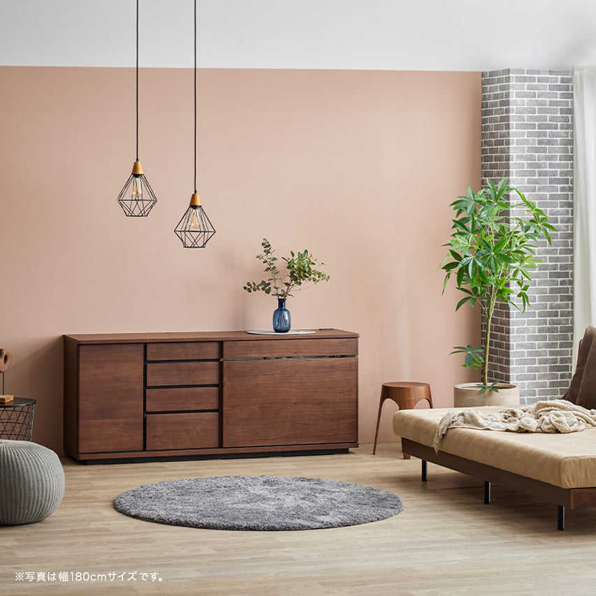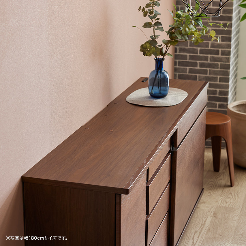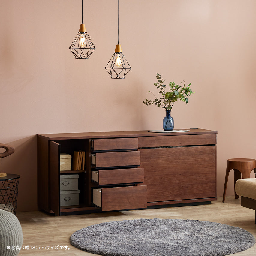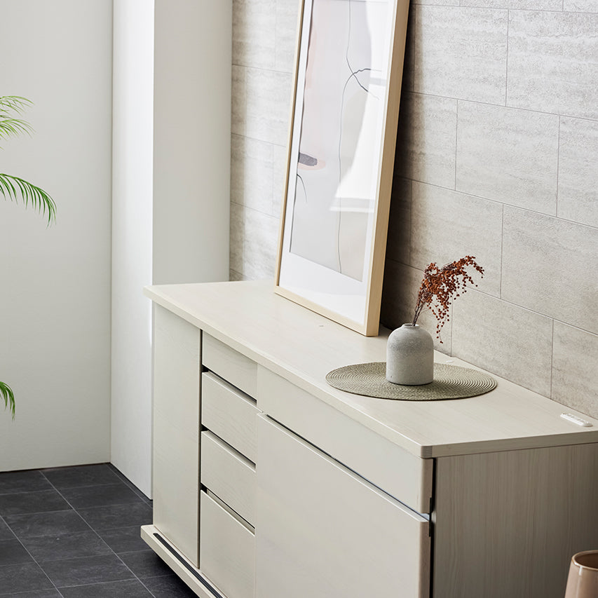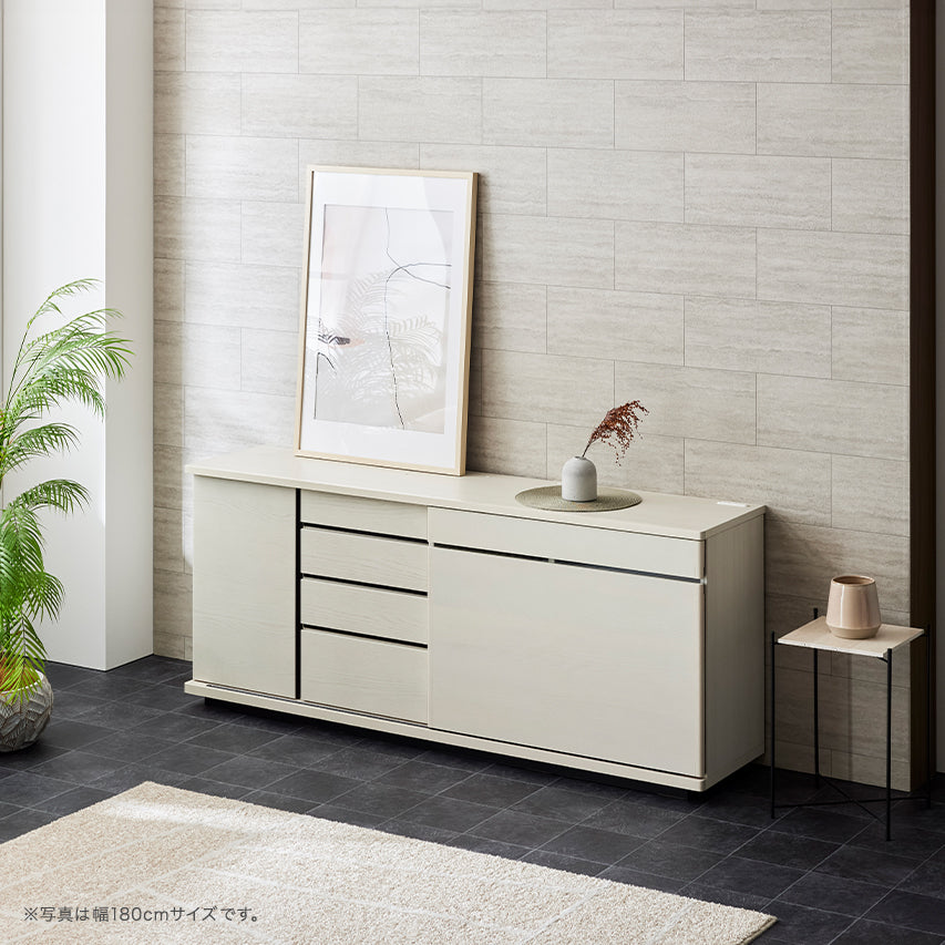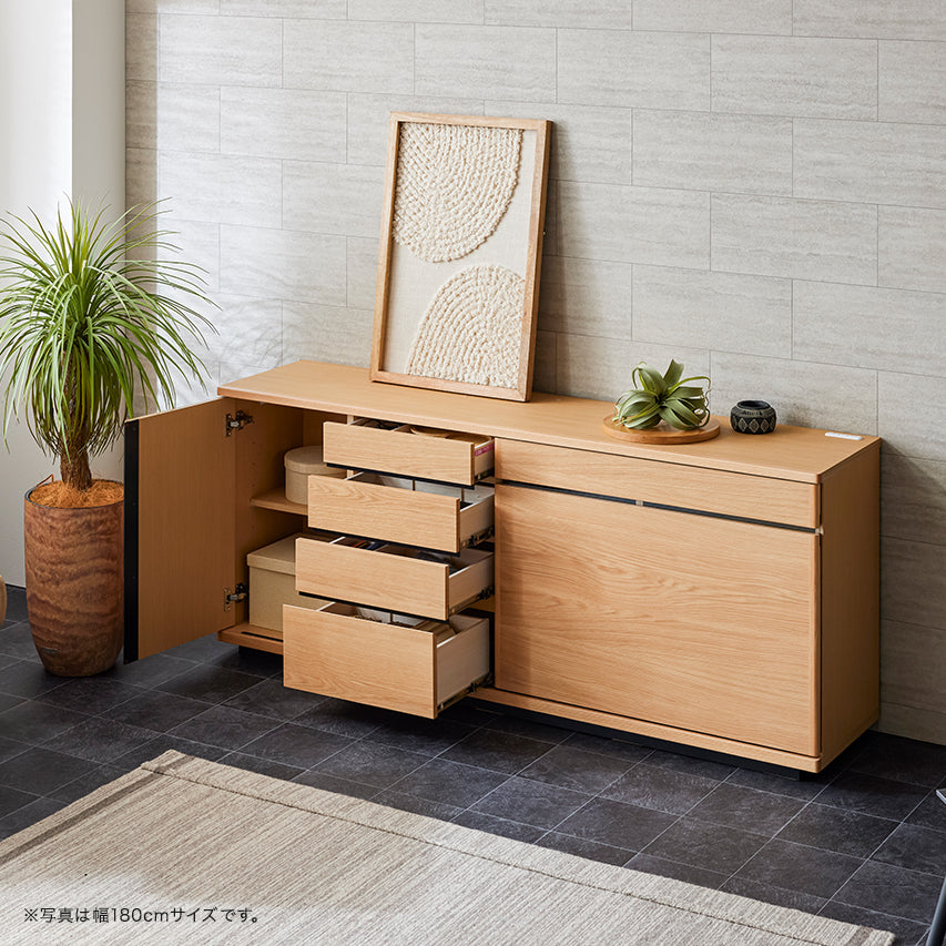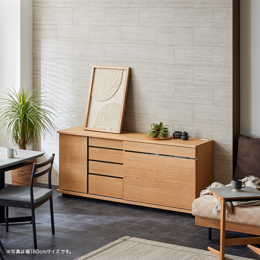 床からわずかに浮いたように見える台輪構造により、安定感と視覚的な軽やかさを両立。 十分な収納量を備えながらも、空間に圧迫感を与えません。