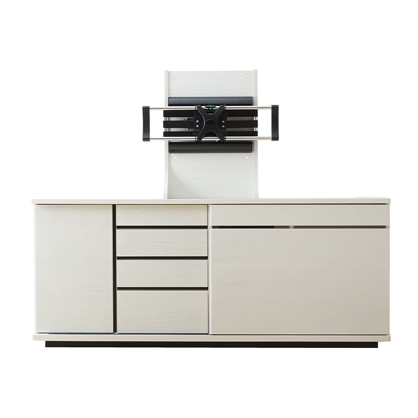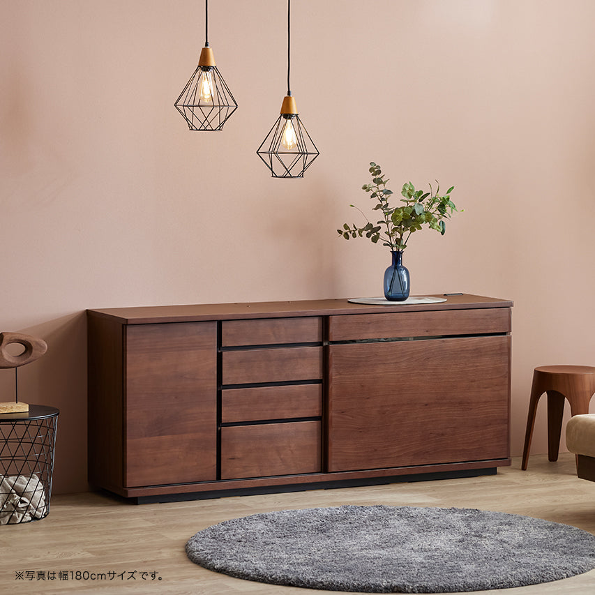 サイドボード自体はかなり存在感があるものの、収納部分が大きいので、リビングはかなりスッキリしたと思います。 全体的に満足ではあるのですが、天板にテレビスタンドを取り付ける穴があったのは購入サイトからはわからなかったので、その点が非常に残念です。一応、白い蓋のようなものをつけて穴を塞ぐのですが、その蓋自体が悪目立ちするので、純粋にサイドボードとしてお使いになる方は注意が必要だと思います。 また、プリンタ収納部分については、大手メーカーの最新のものはギリギリ入らないくらいの大きさでした。